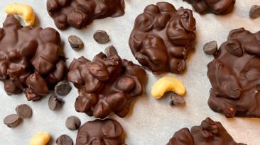 Ingredients 1 cup semi sweet chocolate chips / dark chocolate chips 1 cup roasted nuts (chop if large) Salt – 1 pinch Melt chocolate in the microwave (or by double...