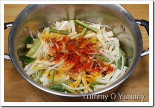 3. Tomato – 2 small, quartered (you can use green tomato, tamarind juice or raw mango slices instead)