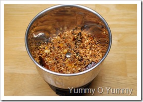 1. Heat little oil in a pan. Add urad dal chana dal, coriander seeds and dry red chillies. Saute for 2 minutes or until they turn golden brown. Switch off and add coconut. Mix well and set aside to cool. Grind in a mixie to a fine powder. Set aside.