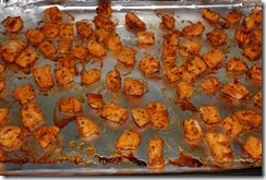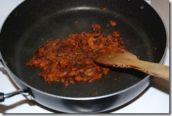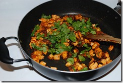 3. Preheat oven at 350 F. Line a baking tray with aluminium foil and grease with oil. Arrange the fish pieces on the baking tray and bake for about 10 – 12 minutes (since they are cut into small pieces, you don’t need to flip them in between). Switch on the broiler and broil for about 2 – 3 minutes. Take out the baking tray. Flake the fish pieces using your fingers or a fork. Set aside.