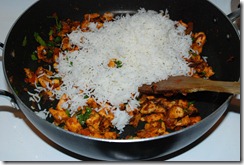 1. Soak rice in enough water for 20 minutes.Drain.  Cook it in a large vessel filled with boiling water, 1 tsp oil , whole spices and enough salt, until done. Strain the cooked rice. Set aside to cool.