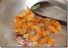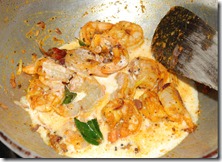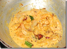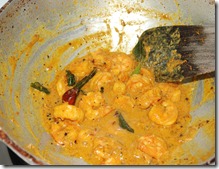 2. Heat oil in a heavy-bottomed pan/cheena chatti. Splutter mustard seeds and fry dry red chilies. Add pearl onions, few curry leaves and saute until pearl onions start turning brown, about 3 – 5 minutes. Next add the marinated prawns. Mix well and stir everything for a minute. Add 1/2 cup coconut milk. Cook at medium heat until oil separates and the prawns are covered with the masala, about 8 minutes. Taste-check for salt. Add a pinch of crushed pepper, few curry leaves and mix well. Switch off. Serve chemmeen vattichathu with warm rice, porotta, puzhukku, chapathis etc.