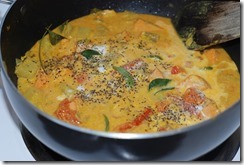 Heat 1.5 tbsp oil in a pan at medium heat and add whole spices and fenugreek seeds. Stir for a few seconds and add onion, ginger, garlic and green chilies. Stir until onion turns transparent and add turmeric powder, chilly powder and coriander powder. Saute until their raw smell is gone. Add cubed potatoes and carrots. Mix well. Next add the thin coconut milk, few curry leaves and enough salt. Bring to a boil. Now add the fish pieces. Swirl the pan gently to mix the fish pieces with the gravy. Next add sliced tomatoes. Mix well. Cover and cook for about 20 minutes or until the fish pieces are done. Add the thick coconut milk, 1/4 tsp pepper powder and a few curry leaves. Mix well and switch off. Check for salt. Finally add 1 tsp coconut oil for an extra taste. Mix well and serve hot with rice, bread or appam.