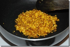 1. To prepare the filling – Heat 2 tsp oil in a pan. Add finely chopped ginger and onion. Saute until onion turns golden. Bring down the heat and add the spice powders numbered 6. Saute until their raw smell is gone. Next add crumbled hard-boiled egg yolk and enough salt. Mix well. Cook for a minute. Switch off.