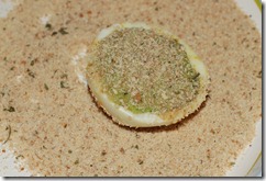 2. Stuff the hard-boiled egg whites with the egg yolk filling. Spread the green chutney on top of it. Press well. Next dip the stuffed eggs in the beaten egg and then coat with bread crumbs. Shallow fry both sides in oil until golden brown, about 1 – 2 minutes on each side. Serve hot with tomato ketchup.