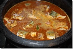 2. Heat 1.5 tbsp coconut oil in a meen chatti / clay pot. Splutter mustard seeds and fry dry red chilies. Add ginger, garlic, pearl onions and saute for 3 – 4 minutes until pearl onions change color. Add ground coconut paste, kudam puli pieces, around 1.5 cup water and enough salt. Bring to a boil and cook for a minute. Add the fish pieces. Cover and cook for about 20 minutes or until the fish pieces are done and gravy is medium-thick. Add a tsp of coconut oil and a few curry leaves. Serve after 30 minutes with hot rice and other side-dishes. This tastes best the next day.