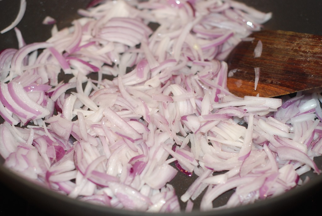 4. Onion – 1 large or around 3 cups, thinly sliced and halved