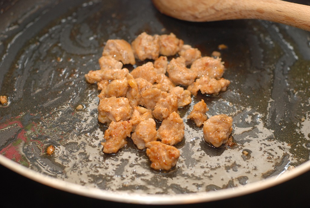 2. Sausage – 1 link, casing removed ( I used sweet Italian style chicken sausage)