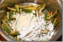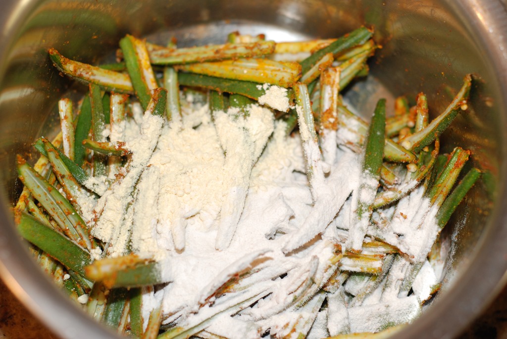 3. Sprinkle chickpea flour and rice flour and toss well.