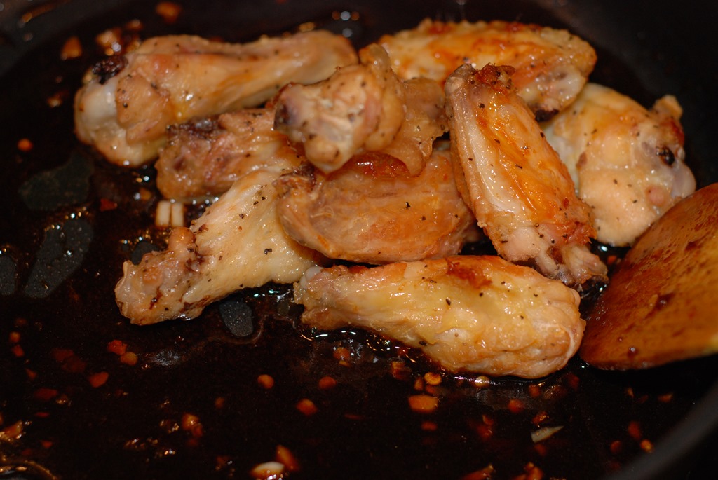 1.Clean and cut the chicken wings between the joints into 2 pieces – drumette and wingette (discard the tip). Combine them with 1/4 tsp salt, pepper powder and 1/2 tsp baking powder. Arrange them on a greased foil or parchment paper. Bake them at 425 F for 14 – 15 minutes. Flip over and bake for another 14 – 15 minutes until golden brown and slightly crisp. (If the chicken wings are large, bake for 15 – 20 minutes on each side).