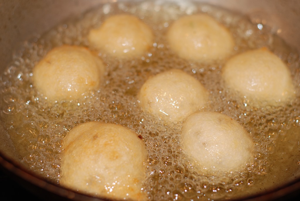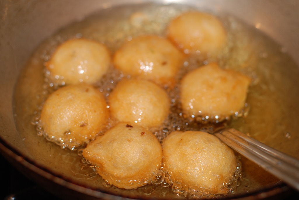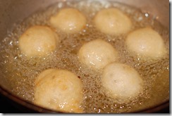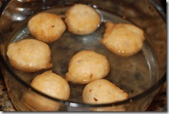 3. Heat oil over medium-high heat. Once hot, bring down the heat to medium. Scoop small portions of the batter and fry in hot oil until both sides turn golden brown. They should be cooked well in the inside also. Remove to a paper towel and after 2 – 3 minutes, transfer to the vessel filled with water. Soak the vadas for about 5 – 7 minutes. After that, take each vada, press between your palms gently to remove excess water and arrange in a separate bowl/serving dish. You can cover and keep this in the refrigerator until you are ready to serve.
