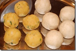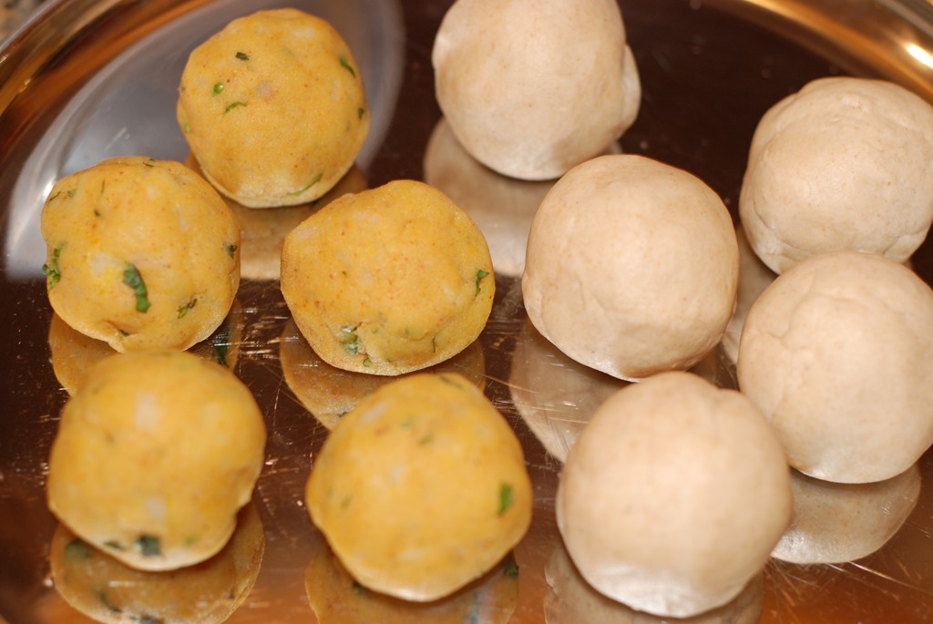 3. Roll the stuffing and the dough to equal-sized balls.
