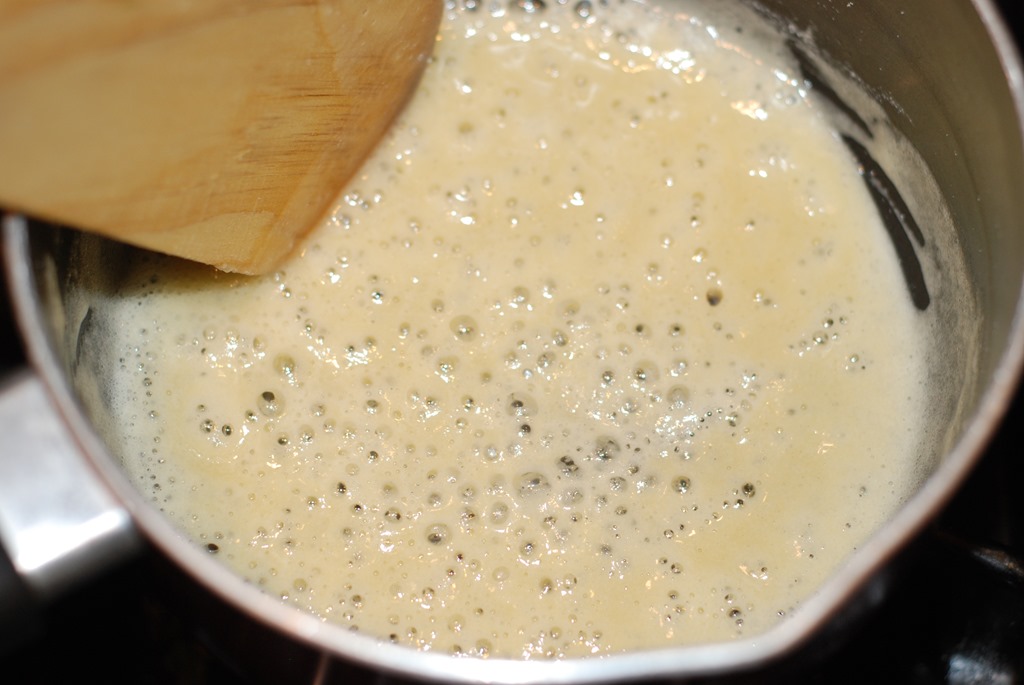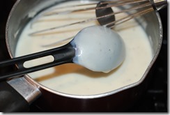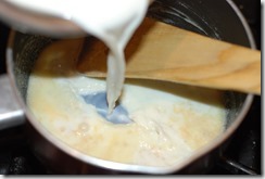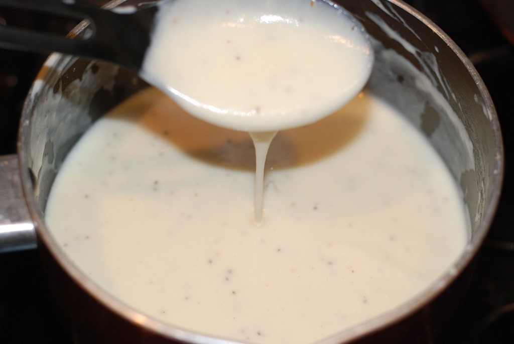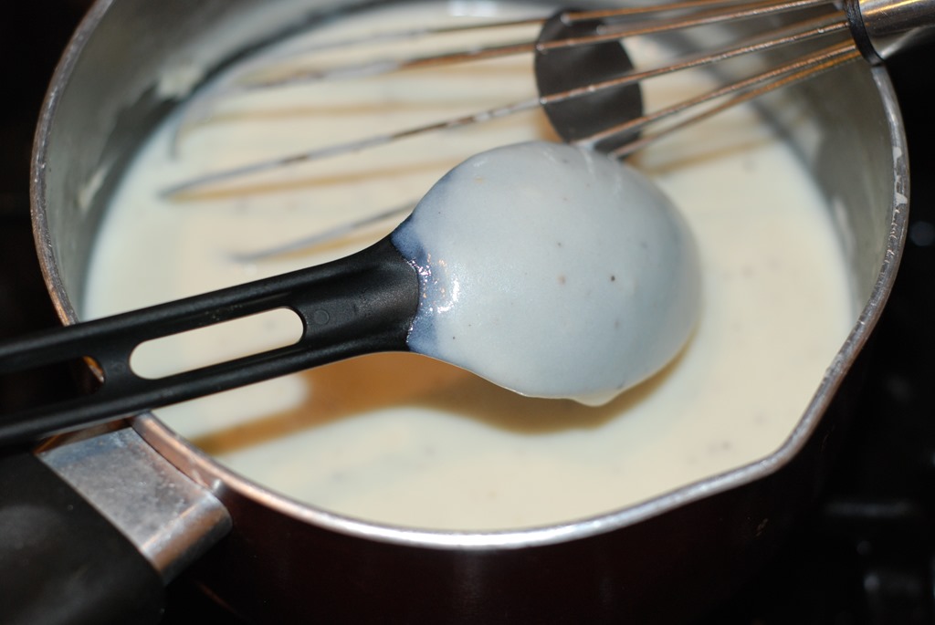 2) Add the warm milk slowly while whisking and cook for a few minutes while stirring until the milk has thickened. The sauce will turn very thick over time so adjust the consistency accordingly.