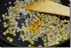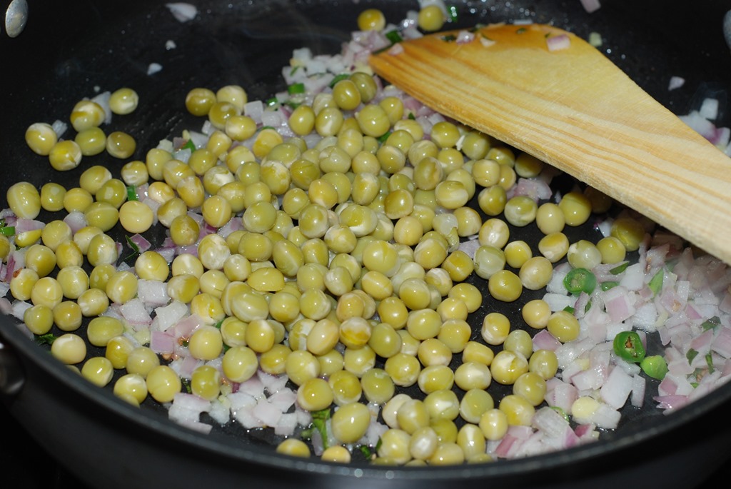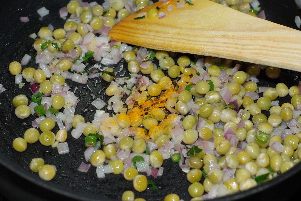 1. Green peas – 1/2 – 3/4 cup, cooked (Soak dried green peas in enough water for 8 hrs. Cook in a vessel until done, take care not to overcook them. Drain and set aside.)