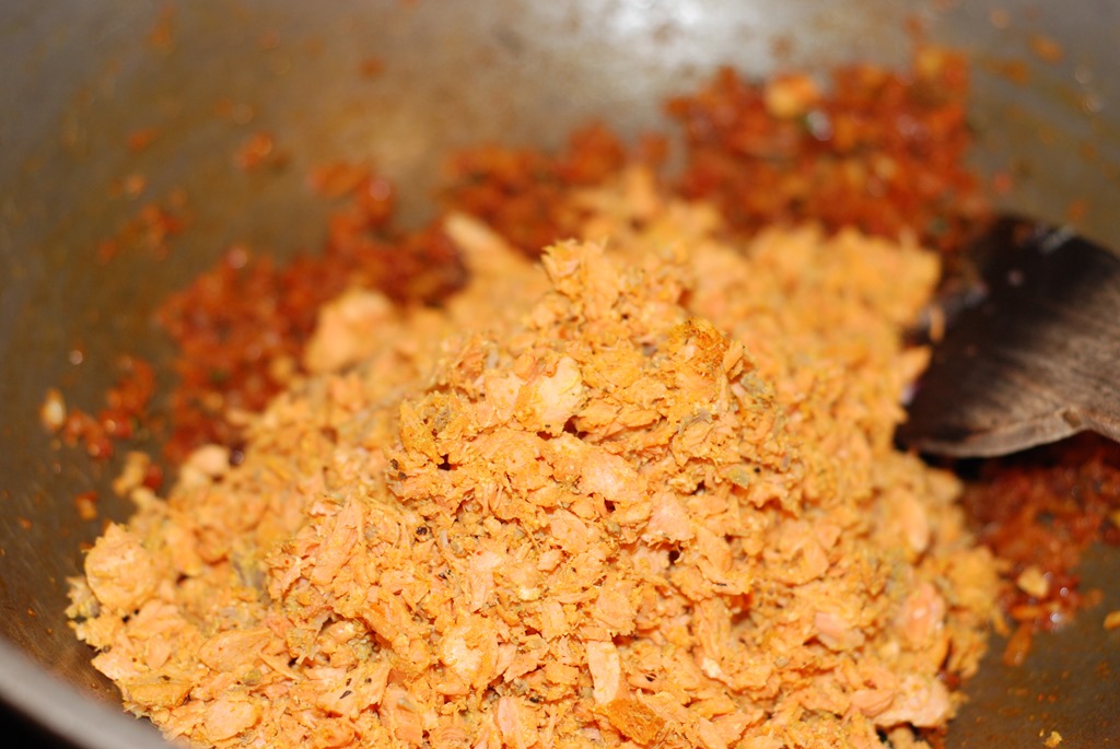 2. Meanwhile combine the fish pieces with ingredients numbered 2. Cook for 10 – 12 minutes until completely done. Mince well in a mixie or using a spatula (if the fish has bones, remove it before shredding).