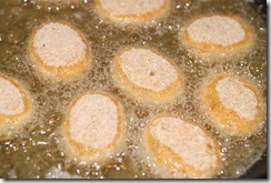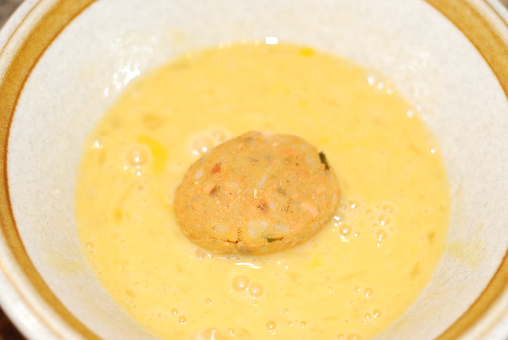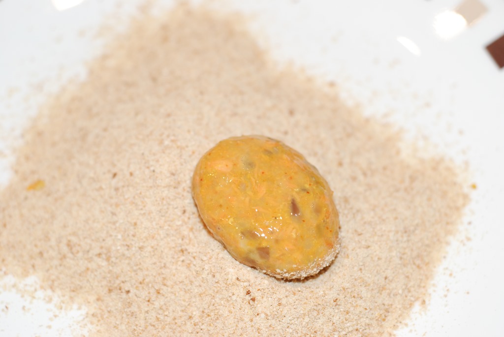 3.  Make small balls out of the fish-potato mixture. Make desired shapes out of them . Dip each one in beaten egg and then coat with bread crumbs. Deep or shallow fry in oil until browned. Drain on a paper towel. Serve warm with tomato ketchup or onion salad/challas.