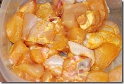 1. Marinate chicken pieces with turmeric powder and salt. Set aside for at least 30 minutes.