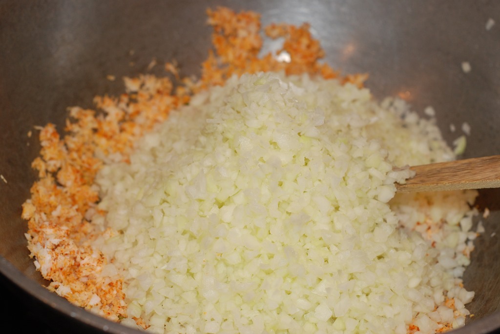 1. Combine grated coconut with crushed cumin seeds, turmeric powder, chilly powder and slightly crushed garlic.