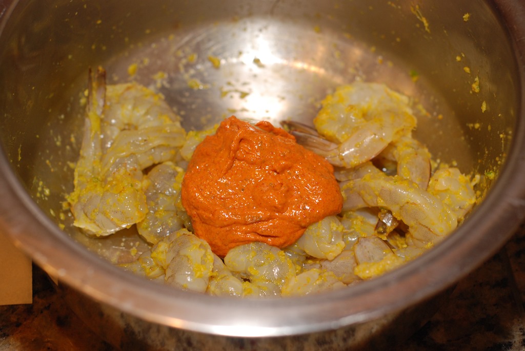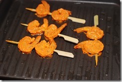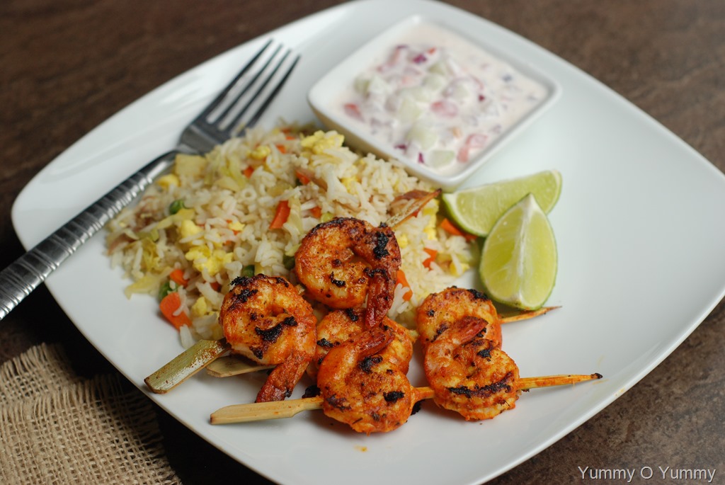 3. Heat 1 tbsp oil in a griddle/ cast iron pan / indoor grill pan. Skewer and cook the shrimp over medium-high or high heat for 2 minutes / side until completely done. Serve immediately.