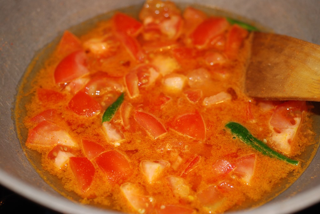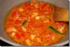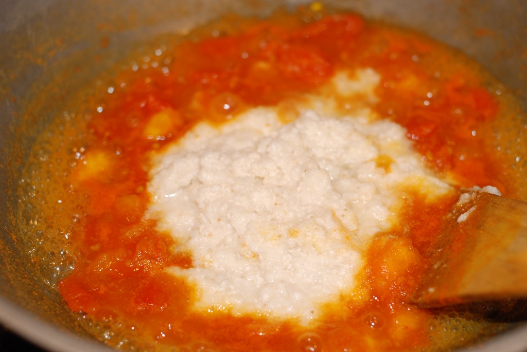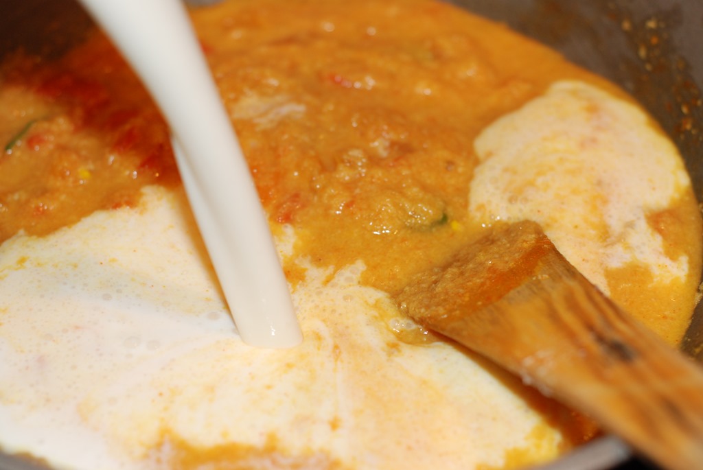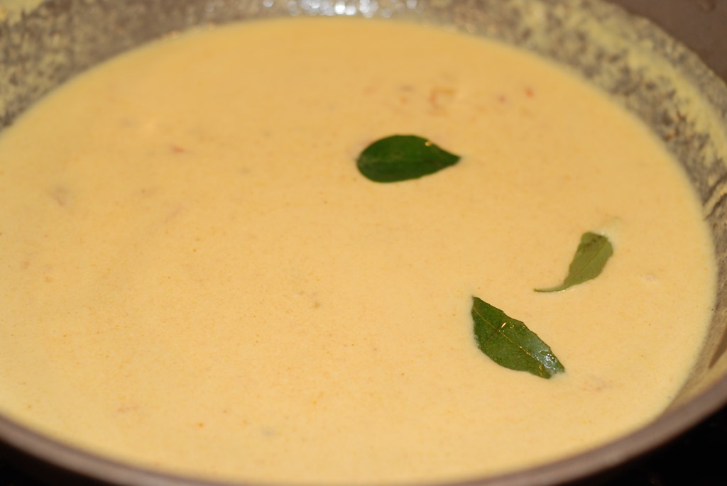 2. Cook all the ingredients numbered 1 for about 8 – 10 minutes. Add ground coconut paste and cook over low heat for a few minutes. Add beaten yoghurt and stir continuously for 1 – 2 minutes until heated through. Add a pinch of sugar / jaggery to balance the flavors. Switch off.