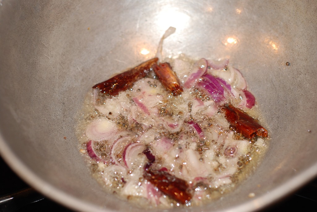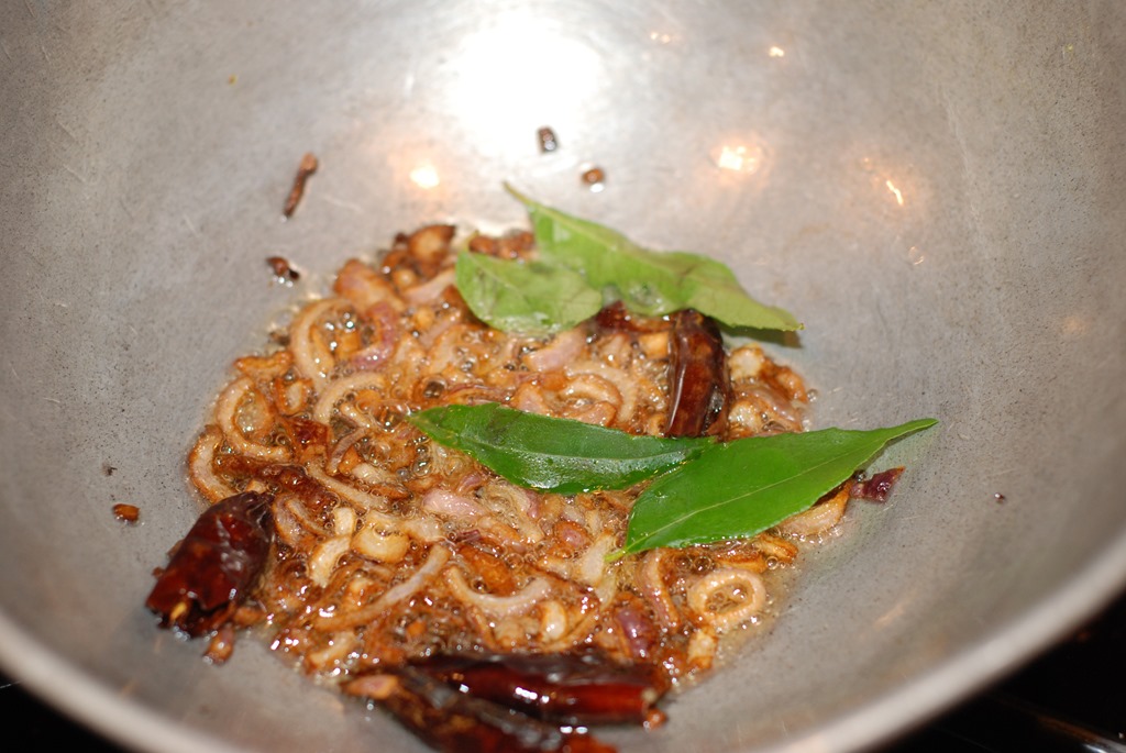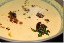 3. Heat coconut oil in a small pan. Splutter mustard seeds and fry dried red chilies and curry leaves for a few seconds. Fry shallots until golden. Pour this over the prepared pulisseri. Keep covered for 10 minutes. Serve with rice and other side-dishes.