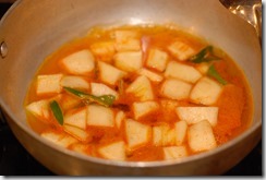 1. Vellarikka (yellow cucumber) – 1 small, peeled, seeded and cubed