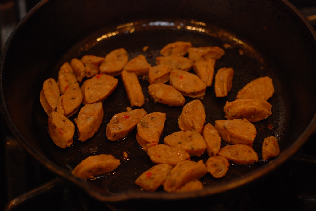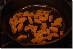 3. Chicken sausage – 1 link (100 gm), cut into small pieces