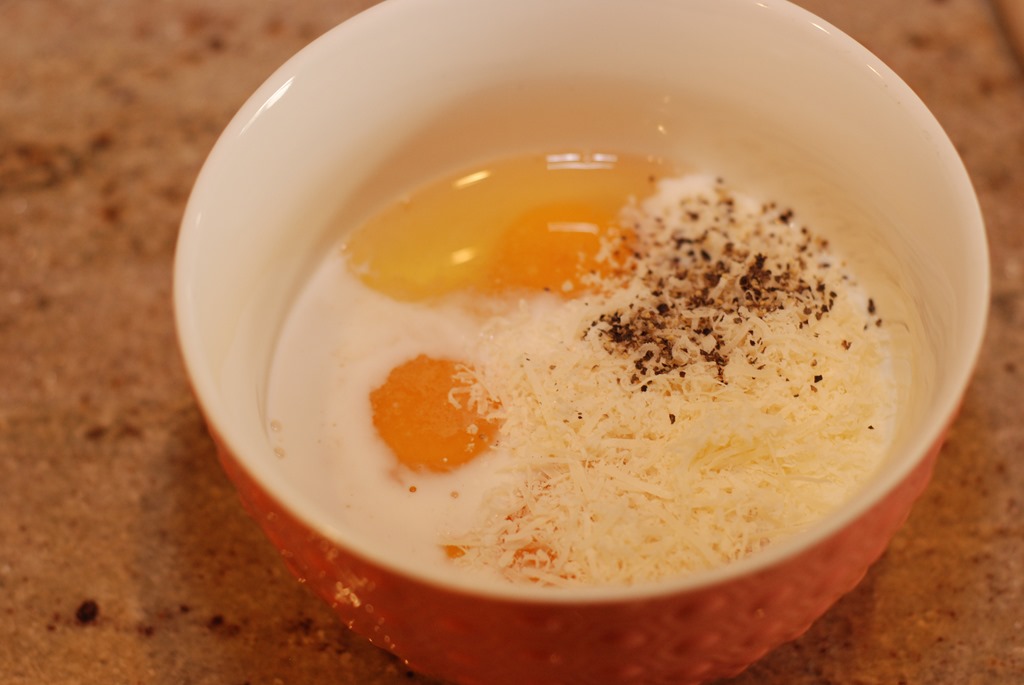 2. Meanwhile whisk eggs adding 2 tbsp milk, salt to taste, 2 tbsp parmesan cheese and a pinch of pepper powder.