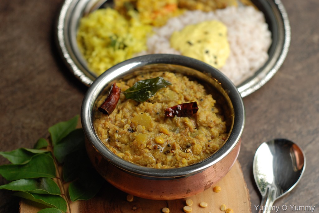 .3. In a small pan, heat 1.5 tbsp coconut oil over medium heat. Splutter mustard seeds and fry dried red chilies and urad dal. Stir until urad dal turns golden. Add grated coconut and fry until reddish brown. Add a few curry leaves and stir well. Pour this over the prepared curry. Mix well. Add a pinch of jaggery and a few curry leaves. Mix well. Set aside for 15 minutes. It will thicken as it rests. Serve with rice and other side-dishes.