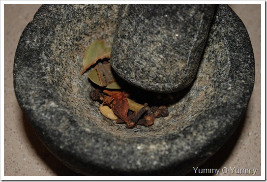 1. Clean and cut the chicken to small pieces. Crush the whole spices very slightly in a mortar and pestle. This step is optional.