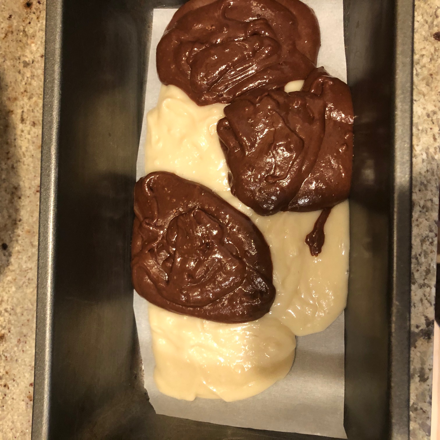 Transfer half of the batter to a medium bowl. Add cocoa powder paste and whisk gently till combined.
