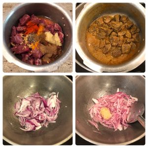 1. Marinate beef pieces with all the ingredients numbered 2. Pressure cook for 4 – 5 whistles until done.