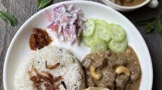 3. For thick steak – Preheat oven at 400 F. Heat 1 tbsp oil in a cast iron pan over high heat. When hot, place steak on the pan. Cook for 2 minutes on one side until a brown crust forms. Flip over and cook on the other side for 1.5 – 2 minutes. Add 2 – 3 tsp butter and 2 – 3 halved garlic cloves about halfway through cooking. Baste with the pan juices in between. Place it on a baking sheet and bake at 400 F for about 6 – 8 minutes (depending on the thickness) for medium rare and 10 – 12 minutes for medium well done. Let rest for 5 minutes. Thinly slice (not too thin) and serve.