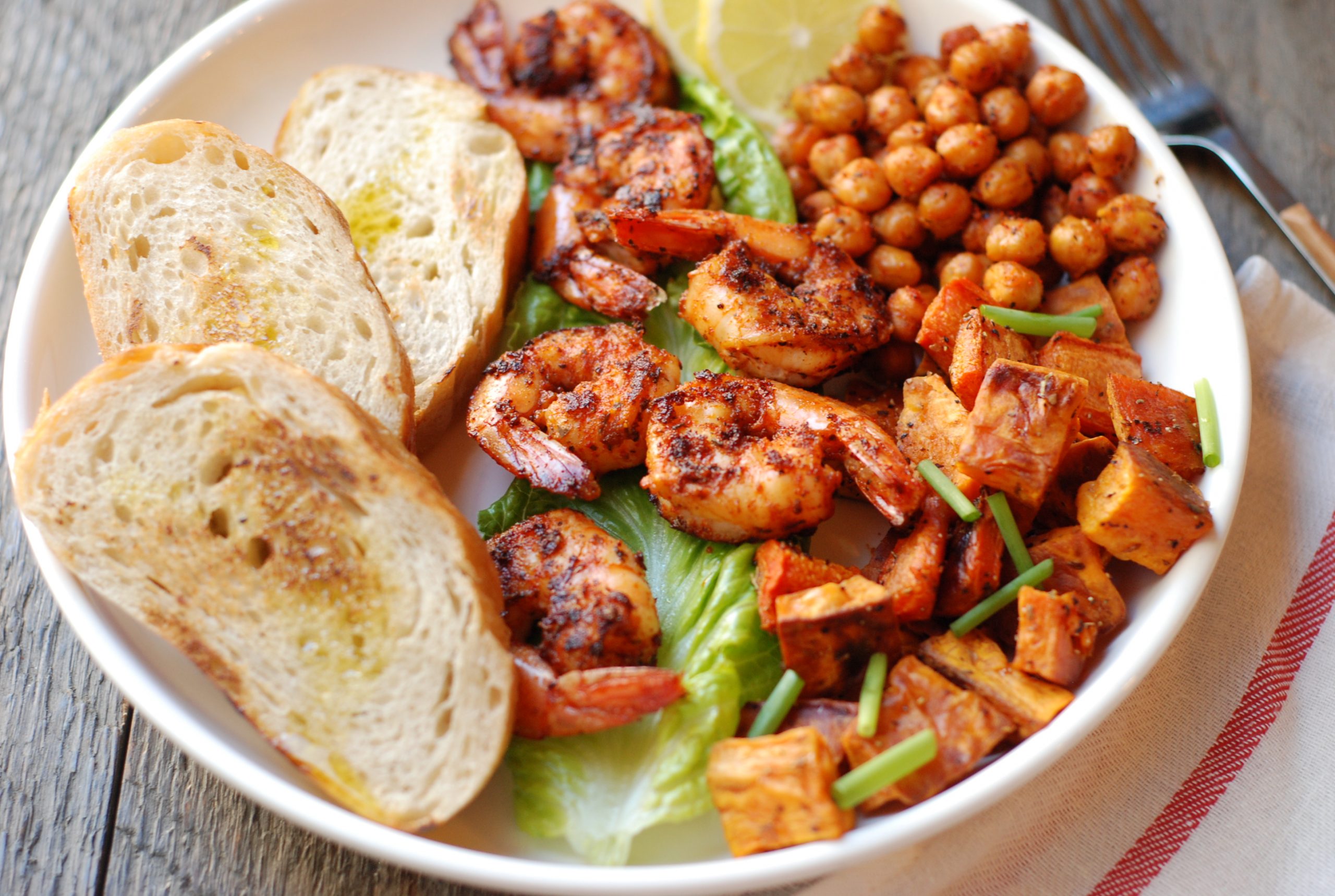 3. Heat 2 tsp oil and 2 tsp butter in a cast iron pan over high or medium-high heat. Cook shrimp in 2 – 3 batches for 1 – 1.5 mts on each side until cooked through. Remove to a paper towel Serve immediately.
