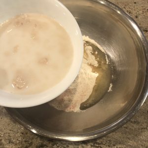 1) In a small bowl, proof the yeast by combining it with lukewarm water, whole milk and sugar. Stir gently to dissolve. Let stand 2 – 3 minutes until foam appears.