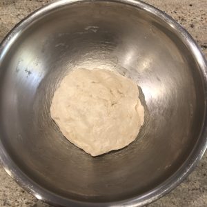 3) Form the dough into a round ball and place in an oiled bowl, turn to coat the entire ball with oil so it doesn’t form a skin. Cover with plastic wrap or with a towel and let it rise in a warm place until doubled in size about 1.5 – 2 hrs.