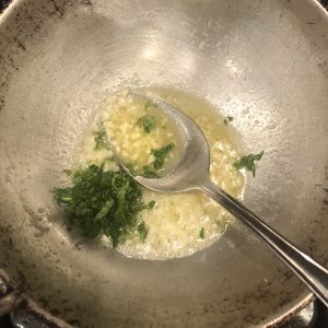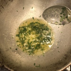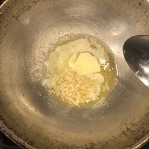 4) Meanwhile heat 1.5 – 2 tbsp butter in a small kadai. Add minced garlic and cook for 1 – 2 minutes over low heat until aromatic (do not brown). Add 1 tbsp chopped cilantro. Mix well and switch off. Add salt, to taste. Set aside until ready to use.