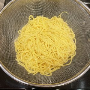 - Cook noodles according to package instructions. Strain well and set aside.