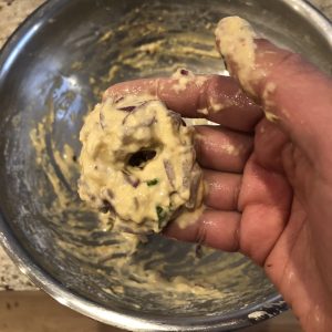4. Water – 1/2 – 3/4 cup or as needed to make a very thick batter