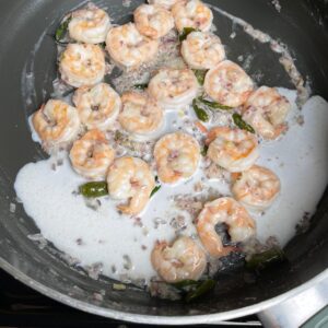 1. Heat coconut oil in a pan over medium heat. Add onion, pinch of salt, ginger and curry leaves. Cook till onion turns translucent. Add crushed kanthari mulaku and cook for one minute. Add prawns, salt and cook for 3 – 4 minutes. Add cashew paste and cook for a minute. Next add coconut milk and cook for 1 – 2 minutes over low heat. Add vinegar, curry leaves and crushed black pepper. Check for salt. Mix well. Let rest for a few minutes. Serve with appam, idiyappam, rava appam etc.