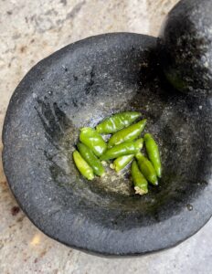 Curry leaves – 1 sprig - Kanthari mulaki / bird’s eye chilies – 10, slightly crushed in mortar and pestle
