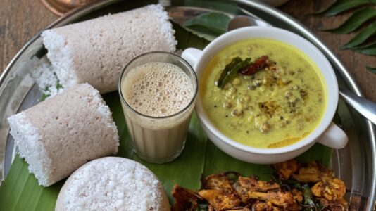 Puttu, green gram curry, pappadam and chicken chathachu porichathu..Came across this combo while scrolling through YouTube last week and gave it a try the next day...